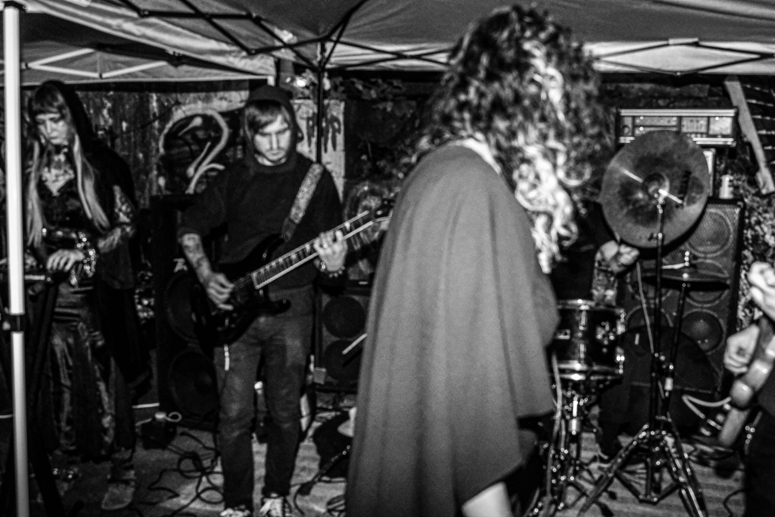 The band began under unusual circumstances. Mike recounts “ I was taking a casual stroll by the graveyard on a dark, moonless night when I heard the sound of a faint whistling. Upon investigating I was pleased to come upon my friend Chips emerging from the dense fog surrounding us. As we walked on among the crypts and mausoleums, we became aware of an ominous whispering, accompanied by the soft glow of a campfire. But of course there was nothing to fear- Dave, Bo, and Rachel were merely performing some inexplicable ritual. I never learned the nature of it.”