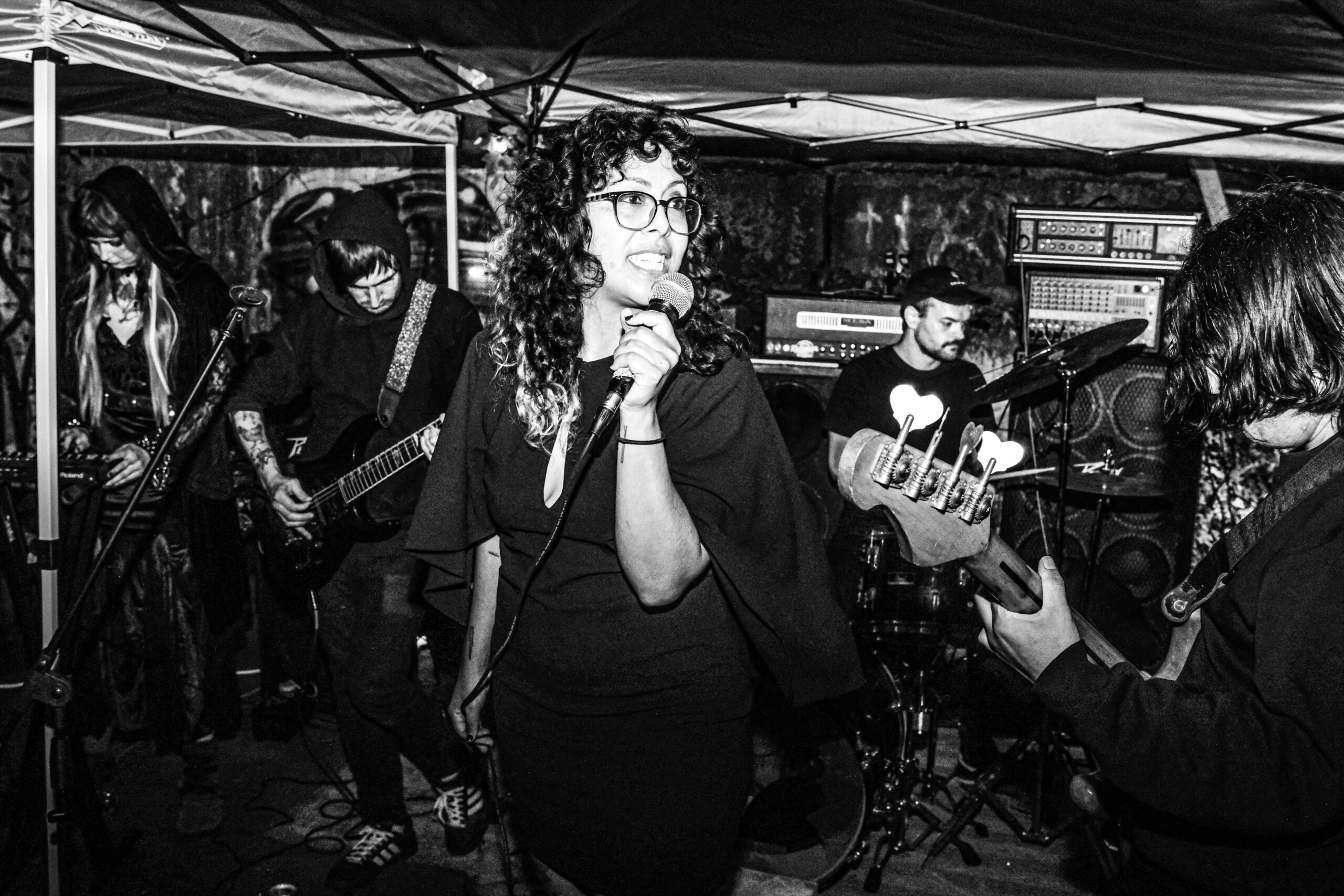The band began under unusual circumstances. Mike recounts “ I was taking a casual stroll by the graveyard on a dark, moonless night when I heard the sound of a faint whistling. Upon investigating I was pleased to come upon my friend Chips emerging from the dense fog surrounding us. As we walked on among the crypts and mausoleums, we became aware of an ominous whispering, accompanied by the soft glow of a campfire. But of course there was nothing to fear- Dave, Bo, and Rachel were merely performing some inexplicable ritual. I never learned the nature of it.”