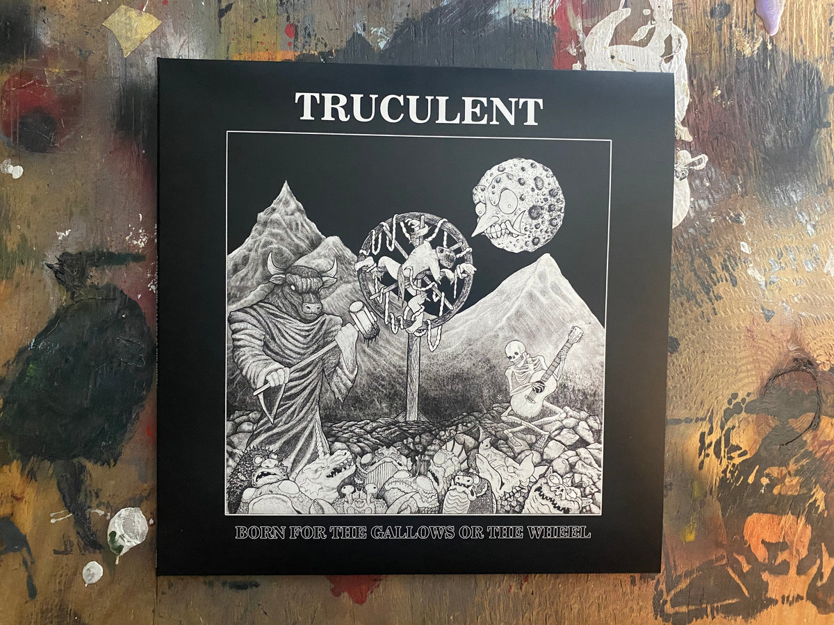 Each Truculent release on Timin’s benfit record label Strange Mono Records supports a different cause, with proceeds benefiting The Bail Fund during Worker’s Guide, The Gaza Soup Kitchen on Caviling The Facts!, and the National Bail Fund on the latest album, Born For The Gallows Or The Wheel.